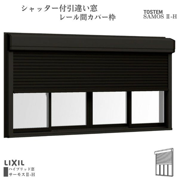 7. シャッター付引違い窓 レール間カバー枠 25111-4 サーモス2-H W2550×H1170mm 窓タイプ 4枚建 複層ガラス 樹脂アルミ複合サッシ シャッター LIXIL リクシル