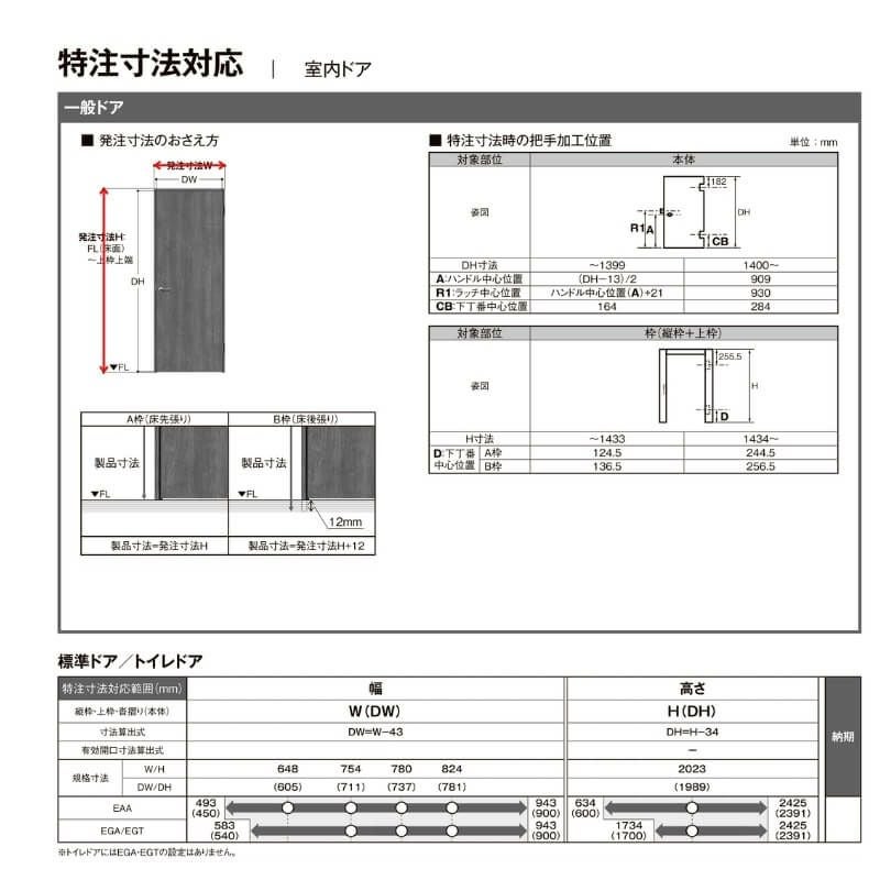 室内ドア TA リクシル リビングドア 建具 片開き扉 特注 【オーダーサイズ 】TA 室内ドア ノンケーシング枠 標準ドア/EGT(ガラスタイプ) W583~943mm×H1734~2425mm LIXIL 建具 扉 交換 リフォーム DIY
