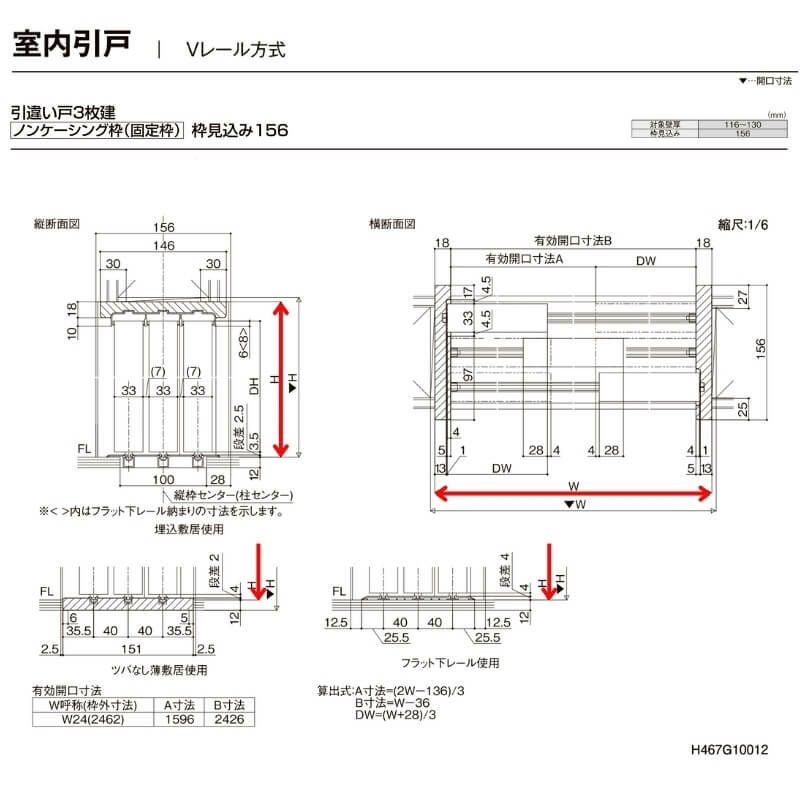 室内ドア TA リクシル Vレール 引違い戸3枚建 特注 【オーダーサイズ 】TA 室内引戸 Vレール方式 ノンケーシング枠 引違い戸3枚建/EGA(ガラスタイプ) W1736~2942mm×H1728~2425mm LIXIL 建具 リフォーム DIY