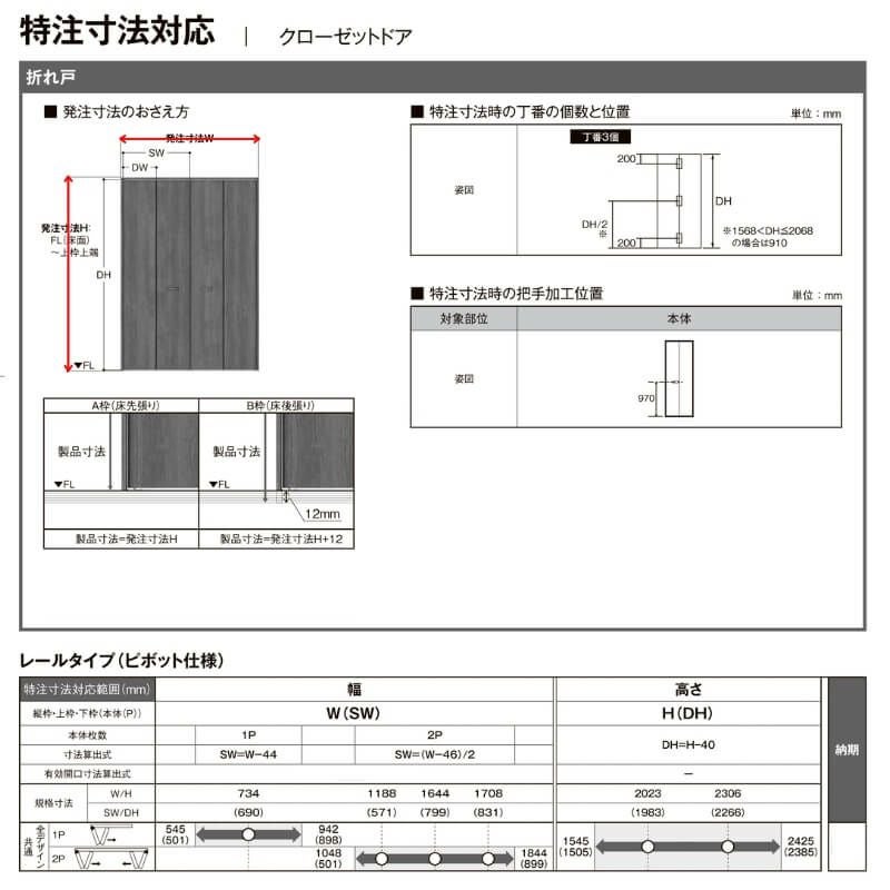 クローゼットドア 折れ戸 TA レール(ピポット仕様) 特注 【オーダーサイズ 】TA クローゼットドア 折れ戸2枚 ノンケーシング枠 レールタイプ(ピポット仕様)/EAA(パネルタイプ) W545~942mm×H2024~2425mm LIXIL DIY