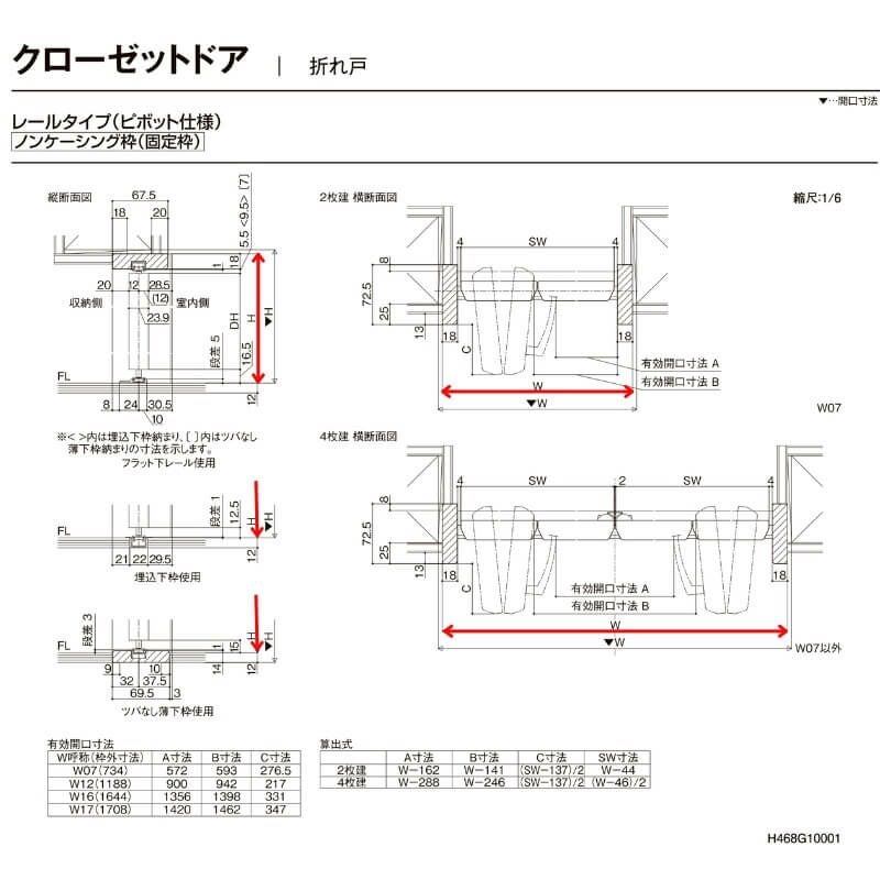 クローゼットドア 折れ戸 TA レール(ピポット仕様) 特注 【オーダーサイズ 】TA クローゼットドア 折れ戸4枚 ノンケーシング枠 レールタイプ(ピポット仕様)/EAA(パネルタイプ) W1048~1844mm×H2024~2425mm LIXIL DIY