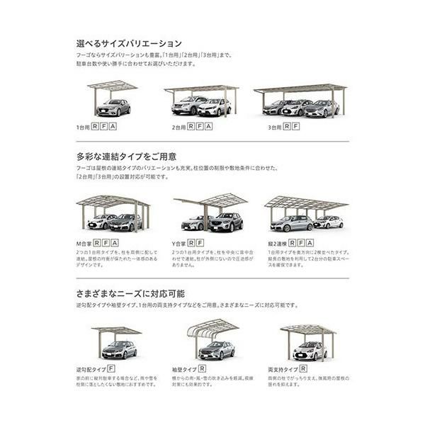 カーポート 2台駐車場 リクシル フーゴF 2台用 屋根連結(奥行違い) 24-57・24-50型 W4954(5988)×L5701 熱線遮断FRP板DRタイプ 車庫 ガレージ 本体