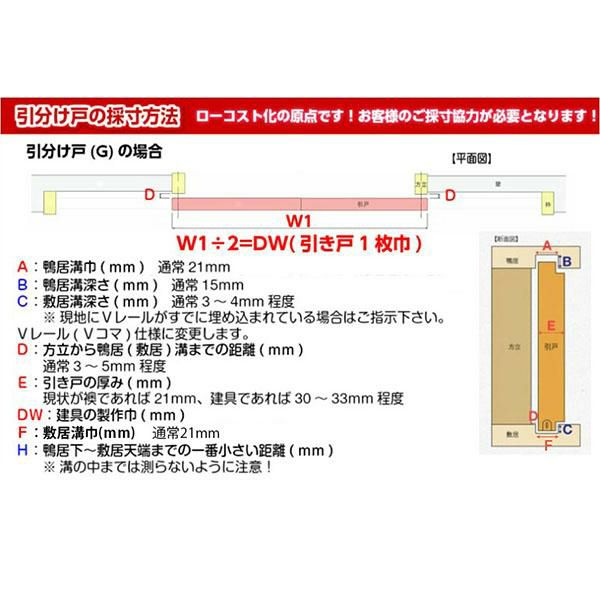かんたん建具 室内引分け戸 ふすま 襖等取替用引戸 和室出入口 建付け調整部品付 縦長窓2列アクリル板付 巾~915×高さ1821~2120mm オーダーサイズ 引分け戸