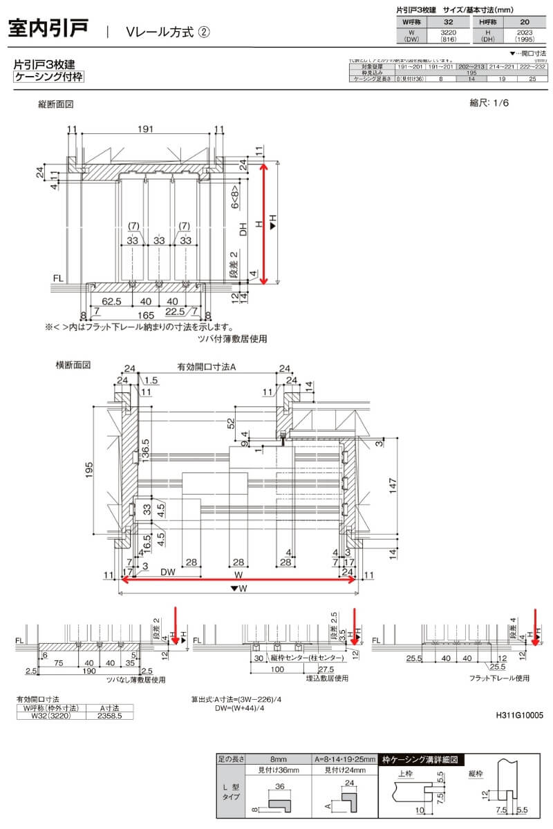 7. 【オーダーサイズ 】リクシル ラシッサD ラテオ Vレール方式 片引戸 3枚建 ALKT-LAA ケーシング付枠 W1756(W2308)~3916㎜×H628(H1728)~2425㎜
