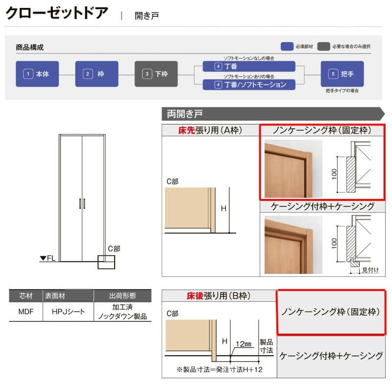 LIXIL ラシッサD ノースフォレスト 建具 交換 リフォーム クローゼットドア 両開き戸 1223 ラシッサD ノースフォレスト 開き戸 ANCH-LAA ケーシング付枠 LIXIL 押入れ リフォーム DIY