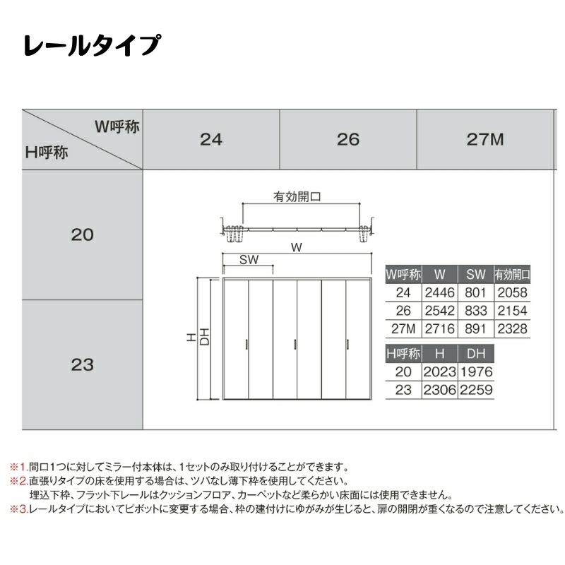 LIXIL ラシッサD ノースフォレスト 建具 交換 リフォーム クローゼットドア 6枚 2423/2623/27M23 ラシッサD ノースフォレスト 折れ戸 レールタイプ ANCF-LAA ケーシング付枠 把手 LIXIL ミラー付/なし リフォーム DIY