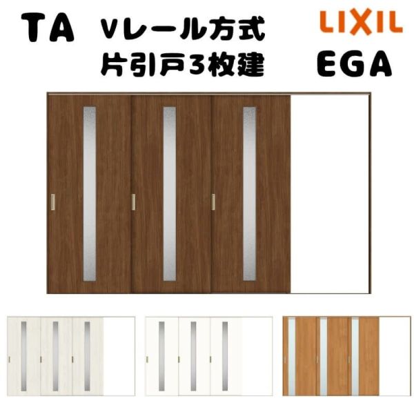 室内ドア TA リクシル Vレール 片引戸3枚建 特注 【オーダーサイズ 】TA 室内引戸 Vレール方式 ノンケーシング枠 片引戸3枚建/EGA(ガラスタイプ) W3001~3893mm×H1728~2425mm LIXIL 建具 リフォーム DIY