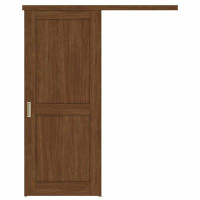 壁面の上部に取り付けたレールに扉を吊り下げて開閉する引戸の一種で、壁に開口がなくても、開口に直接かぶせる形で扉が外側に取り付けられるため、壁を壊さずに既存の開き戸を引戸にリフォームする際などに適しています。