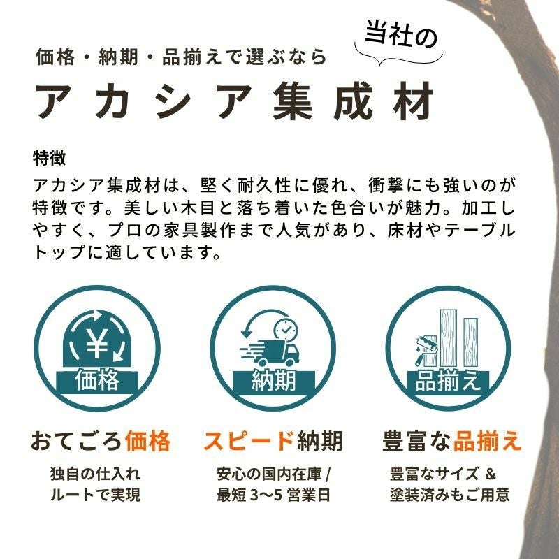 他の画像を見る DIYを格上げする美しい濃淡。硬くておしゃれなアカシア集成材。 アカシア集成材 5枚組 (オイル塗装) 幅1820mm×奥行400mm×厚み15mm テーブル 天板 カウンター 棚板 DIY おしゃれ 木目 耐久性 フリー 反り ねじれ 変形少ない メーカー在庫販売3~5営業日で発送 メーカー希望価格 ¥ 2,634 のところ 当店通常価格 ¥ 24,190 税込 会員特別価格 ¥ 23,460 税込 (0) 詳細を見る お気に入りに登録する