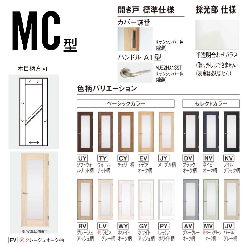パナソニック ベリティス 片開きドア 採光タイプ MC型 スタンダードレーベル UW735/755/780/825/875×UH2035mm 固定枠 2m高 Panasonic 内装ドア 建具 DIY