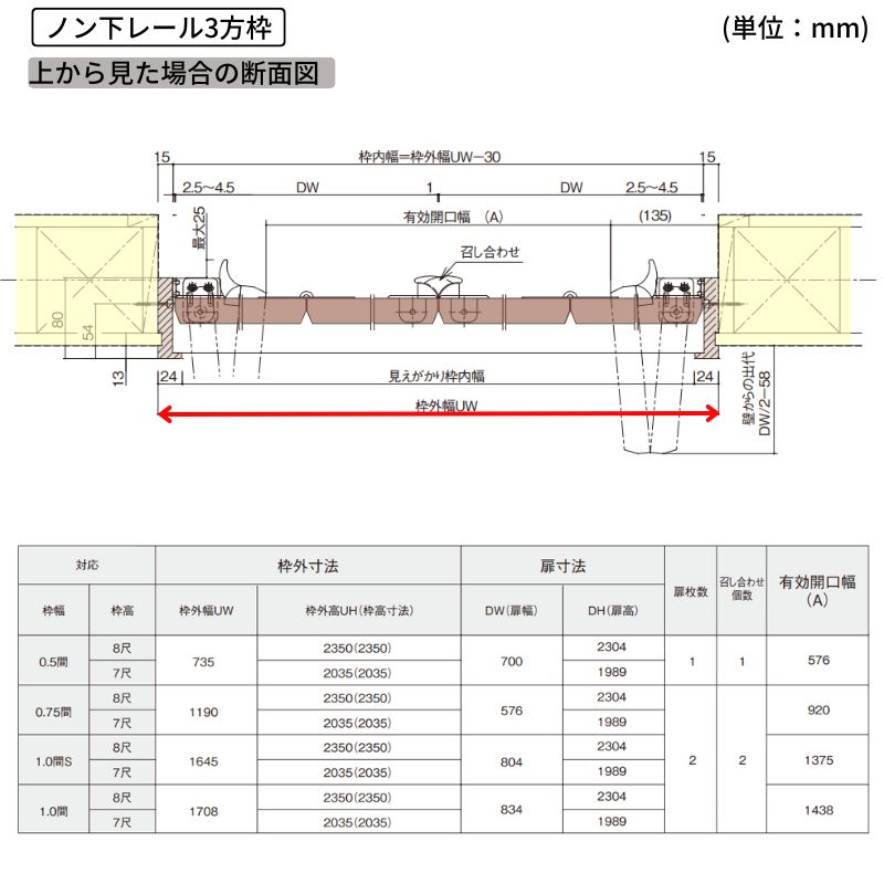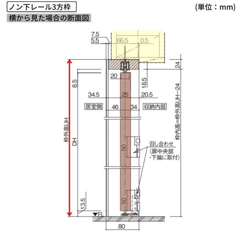 固定枠:ノン下レール3方枠