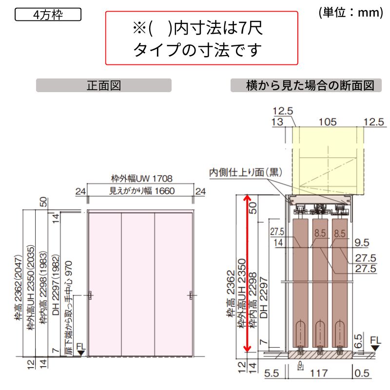 パナソニック ベリティス クローゼットドア 3枚連動引き戸 UW1708×UH2035(7尺) PA型 (フラットタイプ) 押入 引戸 収納 建具 おしゃれ リフォーム DIY Panasonic