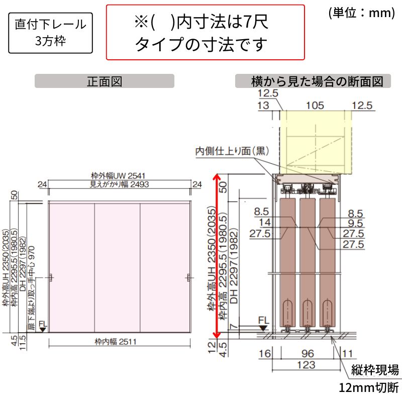 仕 様:クローゼットドア 3枚連動引き戸