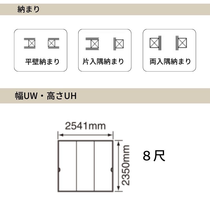 パナソニック ベリティス クローゼットドア 3枚連動引き戸 UW2541×UH2350(8尺) PA型 (フラットタイプ) 押入 引戸 収納 建具 おしゃれ リフォーム DIY Panasonic