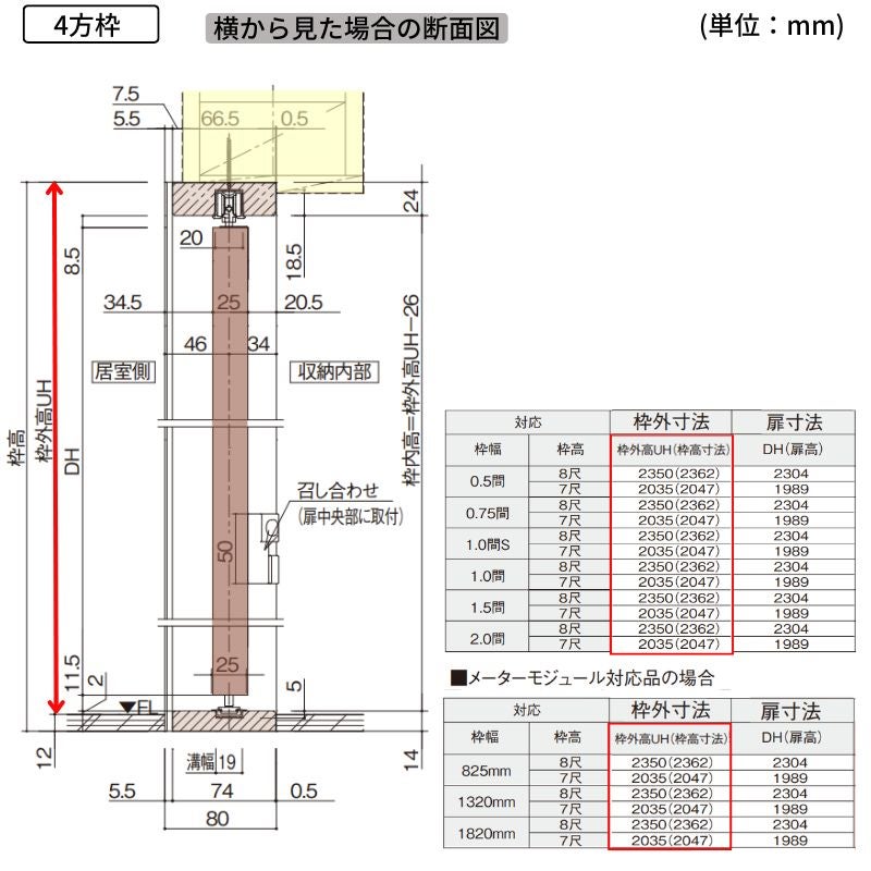 室内引戸(建具)のコマなしタイプ、敷居すべり仕様。オプションで「後付けV型レール+Vコマ仕様」に変更できます。
