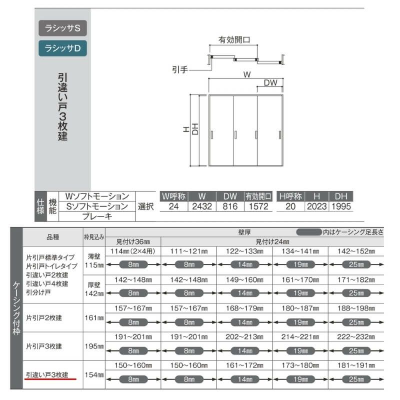 LIXIL ラシッサD ノースフォレスト Vレール 引違い戸3枚建 室内引戸 2420 ラシッサD ノースフォレスト Vレール方式 引違い戸3枚建 ANHT-LBB ケーシング付枠 LIXIL リクシル 建具 交換 リフォーム DIY