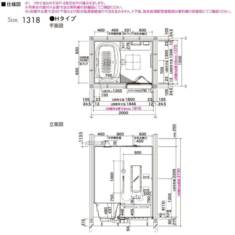 システムバスルーム リデア Hタイプ 1318サイズ 1300×1800mm LIXIL リクシルシステムバス 戸建用 ユニットバス 住宅 浴槽 浴室 お風呂 リフォーム
