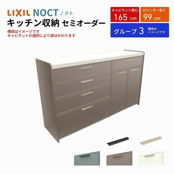 カップボード ノクト 食器棚 間口165cm(90+75cm) ハイフロアキャビネット キッチンボード カウンター高さ99cm 奥行45cm W1650mm LIXIL リクシル キッチン収納 グループ3