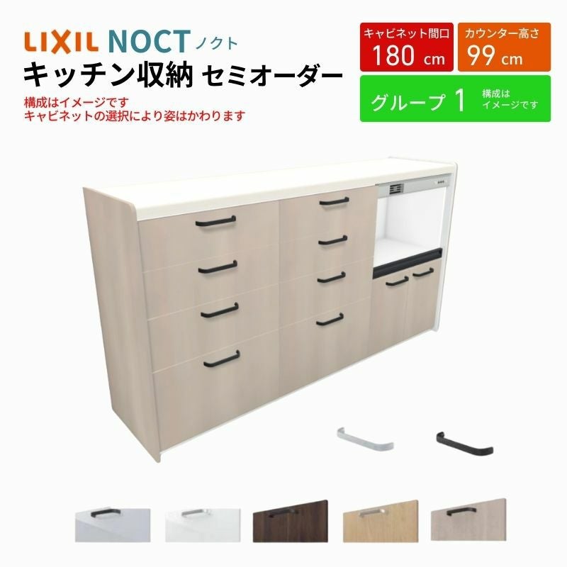 リクシル ノクト キッチン収納 キッチンカウンター 壁付型 カップボード ノクト 食器棚 間口180cm(90+90cm) ハイフロアキャビネット キッチンボード カウンター高さ99cm 奥行45cm W1800mm LIXIL リクシル キッチン収納 グループ1