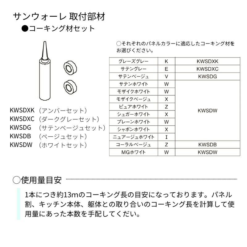 他の画像を見る キッチンパネル サンウォーレ LIXIL キッチンパネル サンウォーレ キッチンパネル用 コーキング材セット リクシル LIXIL 台所 システムキッチン リフォーム メーカーお取り寄せ10営業日以内で発送 メーカー希望価格 ¥ 2,750 のところ 当店通常価格 ¥ 1,700 税込 会員特別価格 ¥ 1,600 税込 (0) 詳細を見る お気に入りに登録する