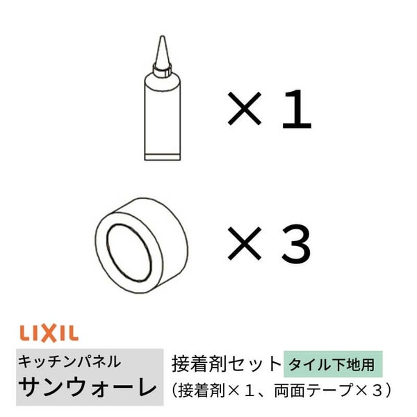 キッチンパネル サンウォーレ キッチンパネル用 接着剤セット タイル下地用 (接着剤×1、両面テープ×3) リクシル LIXIL 台所 システムキッチン KWSST