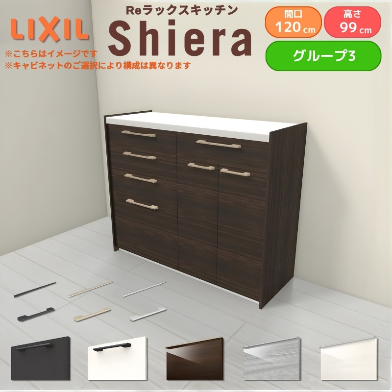 26年新モデル カップボード シエラ 間口120cm(60+60cm) ハイフロアキャビネット 壁付け型 カウンター高さ99cm 奥行45cm W1200mm グループ3 LIXIL リクシル 食器棚 ロータイプ キッチン収納 キッチンボード セミオーダー 仕様変更 施主支給 リフォーム DIY
