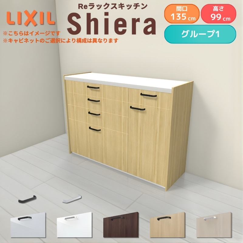 26年新モデル カップボード シエラ 間口135cm(90+45cm) ハイフロアキャビネット 壁付け型 カウンター高さ99cm 奥行45cm W1350mm グループ1 LIXIL リクシル 食器棚 ロータイプ キッチン収納 キッチンボード セミオーダー 仕様変更 施主支給 リフォーム DIY