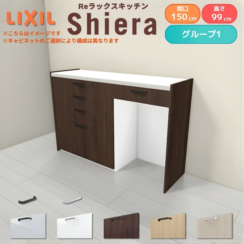 26年新モデル カップボード シエラ 間口150cm(90+60cm) ハイフロアキャビネット 壁付け型 カウンター高さ99cm 奥行45cm W1500mm グループ1 LIXIL リクシル 食器棚 ロータイプ キッチン収納 キッチンボード セミオーダー 仕様変更 施主支給 リフォーム DIY