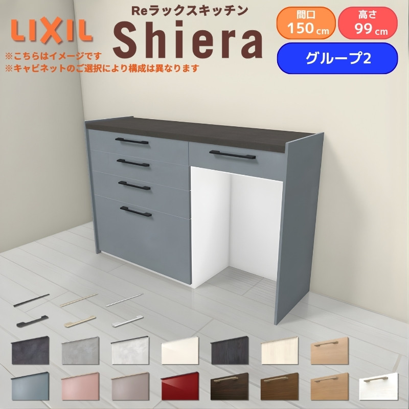 26年新モデル カップボード シエラ 間口150cm(90+60cm) ハイフロアキャビネット 壁付け型 カウンター高さ99cm 奥行45cm W1500mm グループ2 LIXIL リクシル 食器棚 ロータイプ キッチン収納 キッチンボード セミオーダー 仕様変更 施主支給 リフォーム DIY