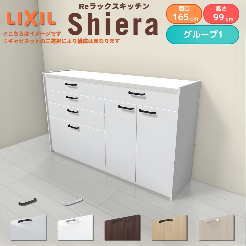 26年新モデル カップボード シエラ 間口165cm(90+75cm) ハイフロアキャビネット 壁付け型 カウンター高さ99cm 奥行45cm W1650mm グループ1 LIXIL リクシル 食器棚 ロータイプ キッチン収納 キッチンボード セミオーダー 仕様変更 施主支給 リフォーム DIY