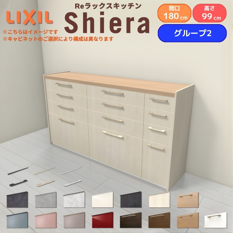 26年新モデル カップボード シエラ 間口180cm(75+75+30cm) ハイフロアキャビネット 壁付け型 カウンター高さ99cm 奥行45cm W1800mm グループ2 LIXIL リクシル 食器棚 ロータイプ キッチン収納 キッチンボード セミオーダー 施主支給 リフォーム DIY