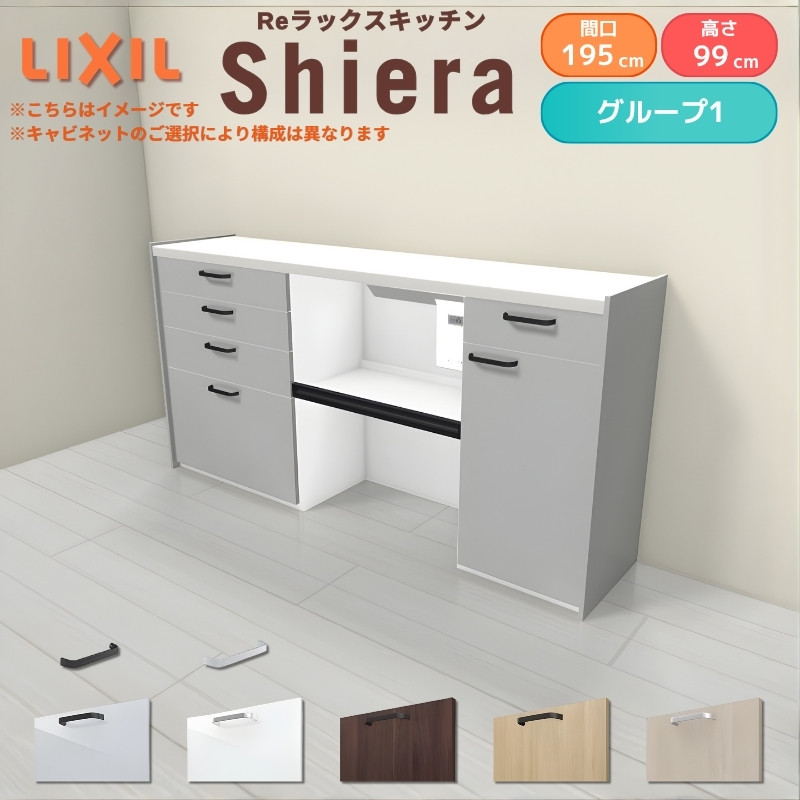 26年新モデル カップボード シエラ 間口195cm(75+75+45cm) ハイフロアキャビネット 壁付け型 カウンター高さ99cm 奥行45cm W1950mm グループ1 LIXIL リクシル 食器棚 ロータイプ キッチン収納 キッチンボード セミオーダー 施主支給 リフォーム DIY