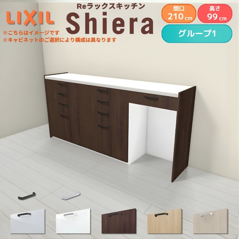 26年新モデル カップボード シエラ 間口210cm(75+75+60cm) ハイフロアキャビネット 壁付け型 カウンター高さ99cm 奥行45cm W2100mm グループ1 LIXIL リクシル 食器棚 ロータイプ キッチン収納 キッチンボード セミオーダー 施主支給 リフォーム DIY