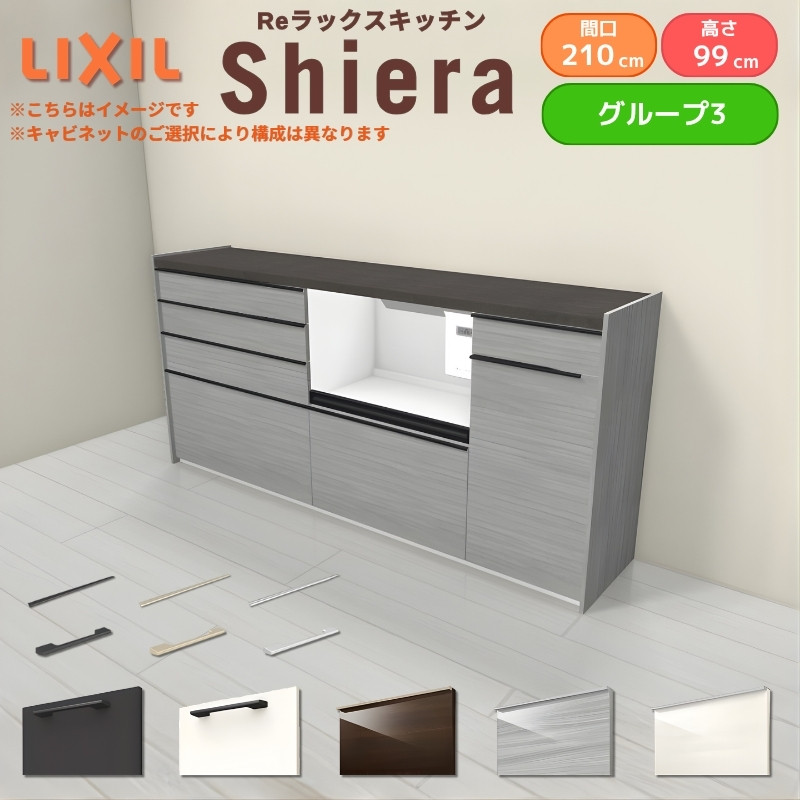 26年新モデル カップボード シエラ 間口210cm(90+75+45cm) ハイフロアキャビネット 壁付け型 カウンター高さ99cm 奥行45cm W2100mm グループ3 LIXIL リクシル 食器棚 ロータイプ キッチン収納 キッチンボード セミオーダー 施主支給 リフォーム DIY