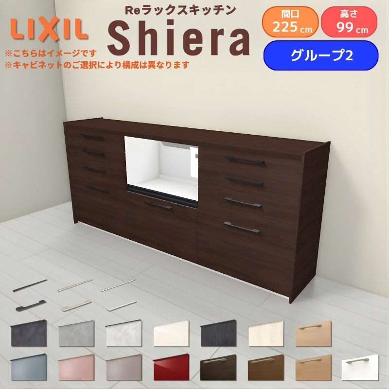 26年新モデル カップボード シエラ 間口225cm(75+75+75cm) ハイフロアキャビネット 壁付け型 カウンター高さ99cm 奥行45cm W2250mm グループ2 LIXIL リクシル 食器棚 ロータイプ キッチン収納 キッチンボード セミオーダー 施主支給 リフォーム DIY