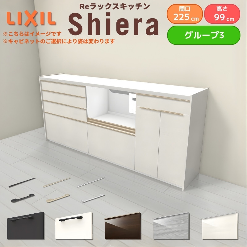26年新モデル カップボード シエラ 間口225cm(90+75+60cm) ハイフロアキャビネット 壁付け型 カウンター高さ99cm 奥行45cm W2250mm グループ3 LIXIL リクシル 食器棚 ロータイプ キッチン収納 キッチンボード セミオーダー 施主支給 リフォーム DIY