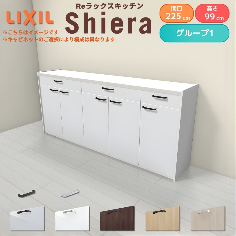 26年新モデル カップボード シエラ 間口225cm(90+90+45cm) ハイフロアキャビネット 壁付け型 カウンター高さ99cm 奥行45cm W2250mm グループ1 LIXIL リクシル 食器棚 ロータイプ キッチン収納 キッチンボード セミオーダー 施主支給 リフォーム DIY