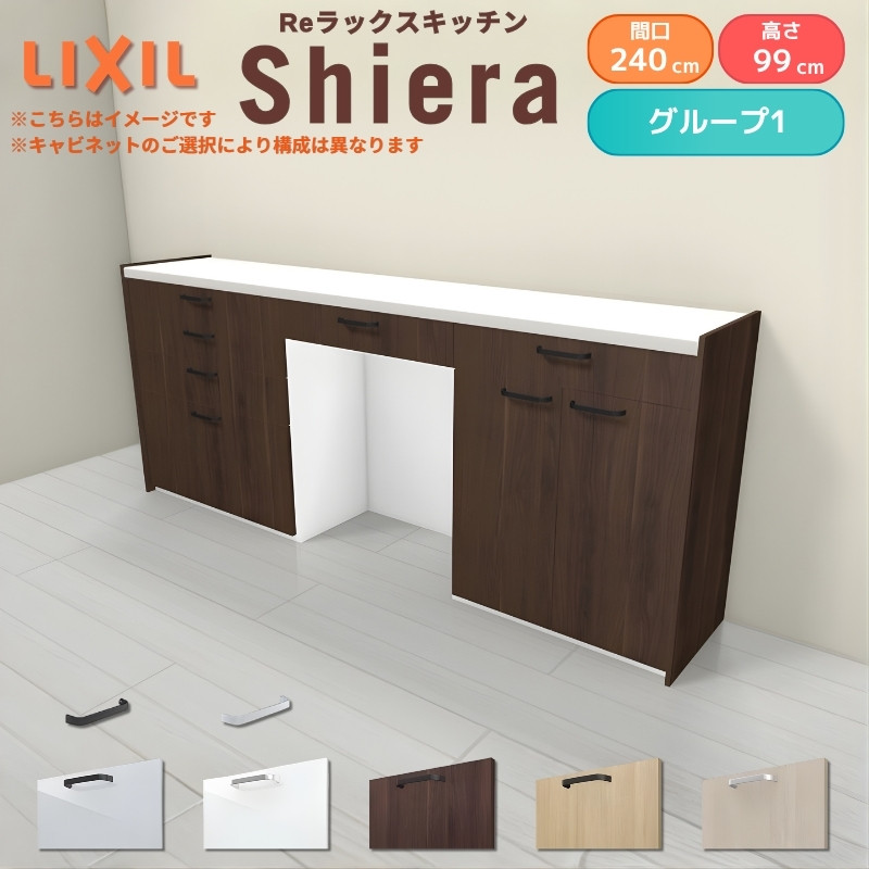 26年新モデル カップボード シエラ 間口240cm(90+75+75cm) ハイフロアキャビネット 壁付け型 カウンター高さ99cm 奥行45cm W2400mm グループ1 LIXIL リクシル 食器棚 ロータイプ キッチン収納 キッチンボード セミオーダー 施主支給 リフォーム DIY