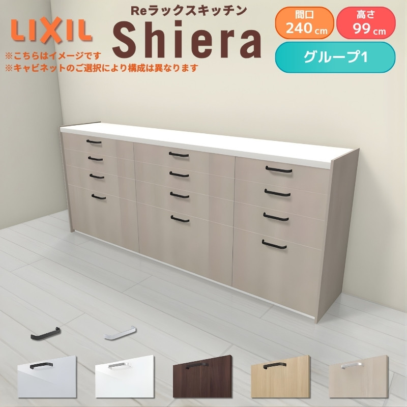 26年新モデル カップボード シエラ 間口240cm(90+90+60cm) ハイフロアキャビネット 壁付け型 カウンター高さ99cm 奥行45cm W2400mm グループ1 LIXIL リクシル 食器棚 ロータイプ キッチン収納 キッチンボード セミオーダー 施主支給 リフォーム DIY