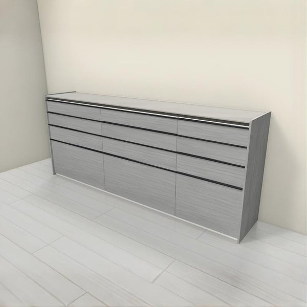 収納カウンターもスリムデザインで統一できるので、空間をエレガントにモダンに美しくまとまります。