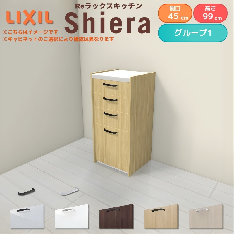26年新モデル カップボード シエラ 間口45cm(R/L) ハイフロアキャビネット 壁付け型 カウンター高さ99cm 奥行45cm W450mm グループ1 LIXIL リクシル 食器棚 ロータイプ 一人暮らし キッチン収納 キッチンボード セミオーダー 施主支給 リフォーム DIY