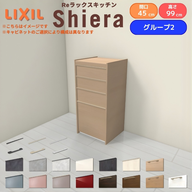 26年新モデル カップボード シエラ 間口45cm(R/L) ハイフロアキャビネット 壁付け型 カウンター高さ99cm 奥行45cm W450mm グループ2 LIXIL リクシル 食器棚 ロータイプ 一人暮らし キッチン収納 キッチンボード セミオーダー 施主支給 リフォーム DIY