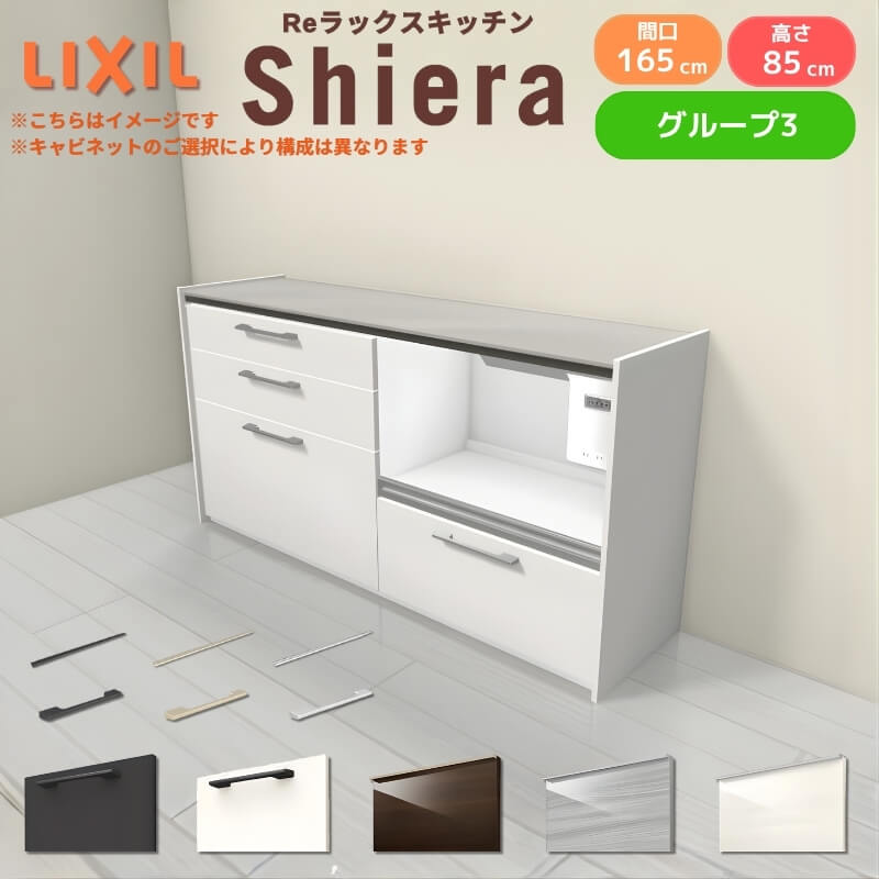 26年新モデル カップボード シエラ 間口165cm(90+75cm) フロアキャビネット 壁付け型 カウンター高さ85cm 奥行45cm W1650mm グループ3 LIXIL リクシル 食器棚 ロータイプ キッチン収納 キッチンボード セミオーダー 仕様変更 施主支給 リフォーム DIY