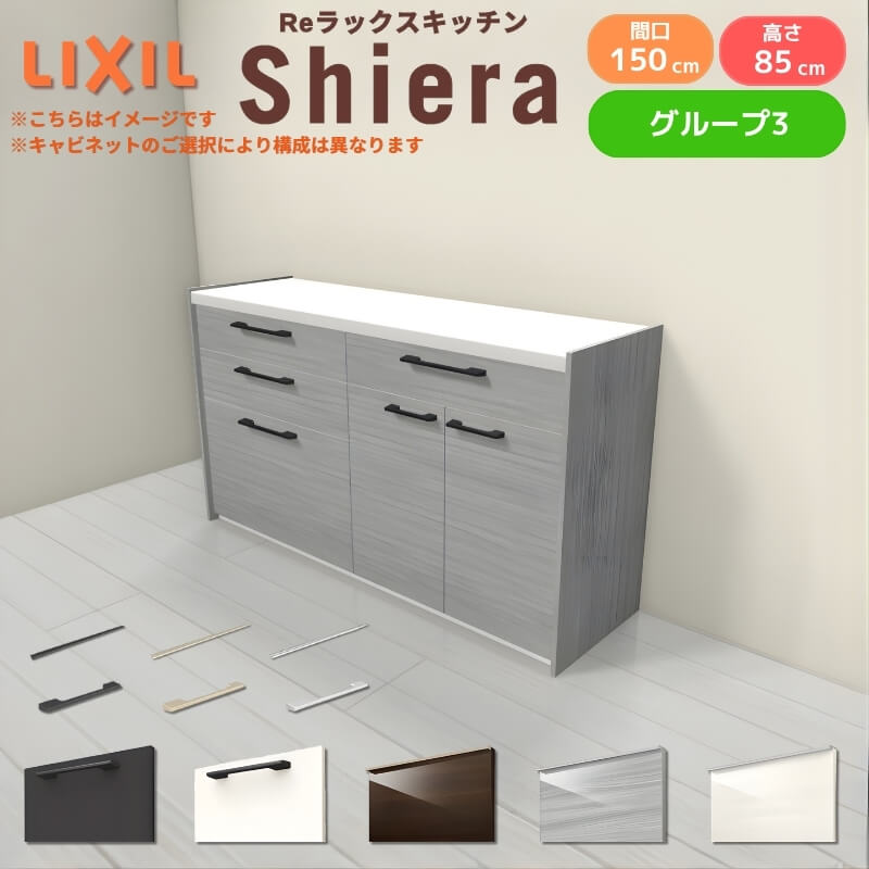 26年新モデル カップボード シエラ 間口150cm(90+60cm) フロアキャビネット 壁付け型 カウンター高さ85cm 奥行45cm W1500mm グループ3 LIXIL リクシル 食器棚 ロータイプ キッチン収納 キッチンボード セミオーダー 仕様変更 施主支給 リフォーム DIY