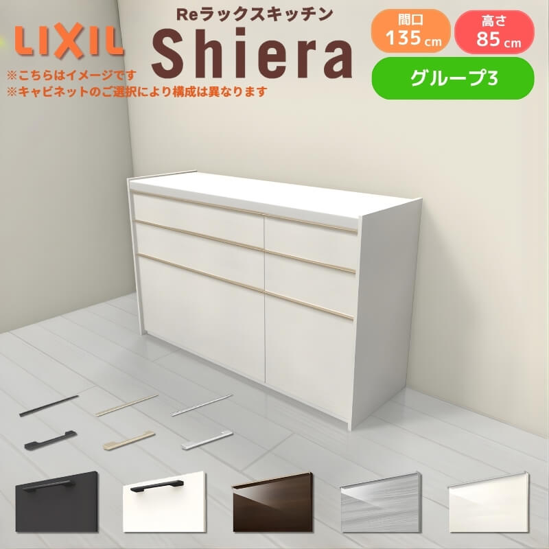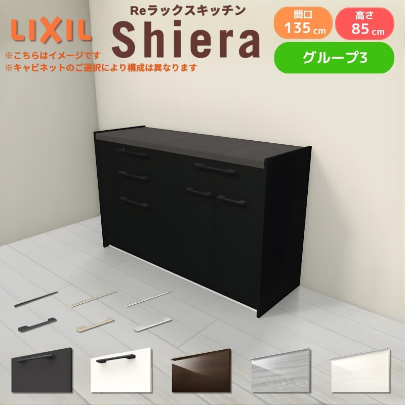 26年新モデル カップボード シエラ 間口135cm(90+45cm) フロアキャビネット 壁付け型 カウンター高さ85cm 奥行45cm W1350mm グループ3 LIXIL リクシル 食器棚 ロータイプ キッチン収納 キッチンボード セミオーダー 仕様変更 施主支給 リフォーム DIY