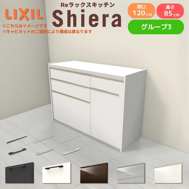 26年新モデル カップボード シエラ 間口120cm(60+60cm) フロアキャビネット 壁付け型 カウンター高さ85cm 奥行45cm W1200mm グループ3 LIXIL リクシル 食器棚 ロータイプ キッチン収納 キッチンボード セミオーダー 仕様変更 施主支給 リフォーム DIY
