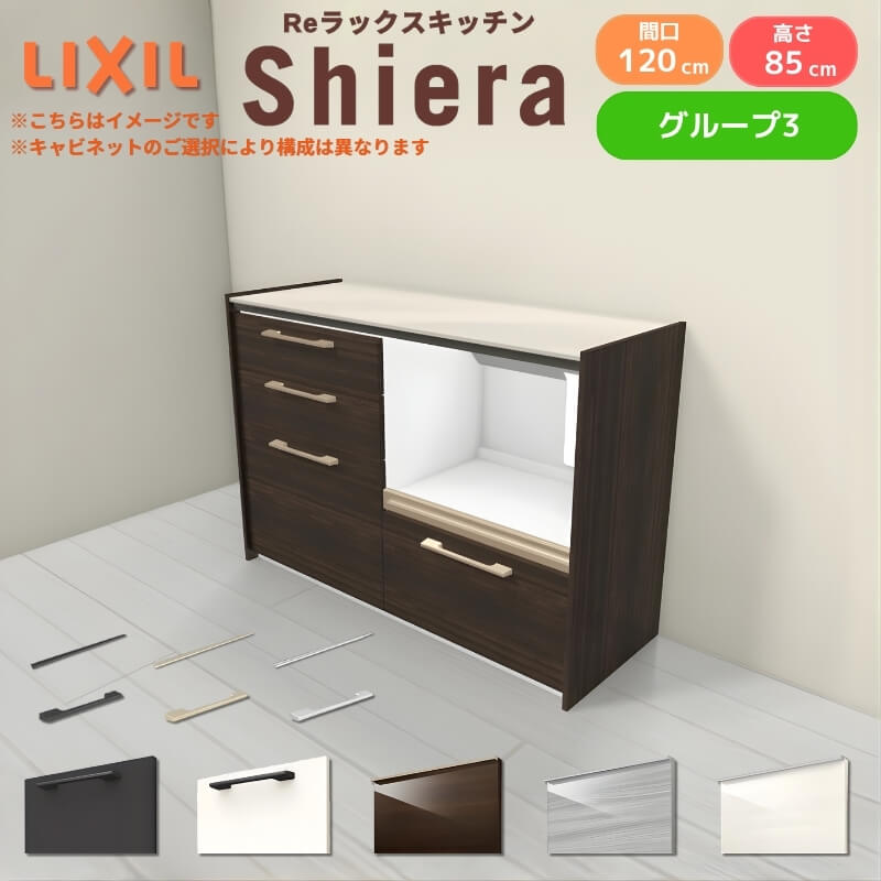 26年新モデル カップボード シエラ 間口120cm(60+60cm) フロアキャビネット 壁付け型 カウンター高さ85cm 奥行45cm W1200mm グループ3 LIXIL リクシル 食器棚 ロータイプ キッチン収納 キッチンボード セミオーダー 仕様変更 施主支給 リフォーム DIY