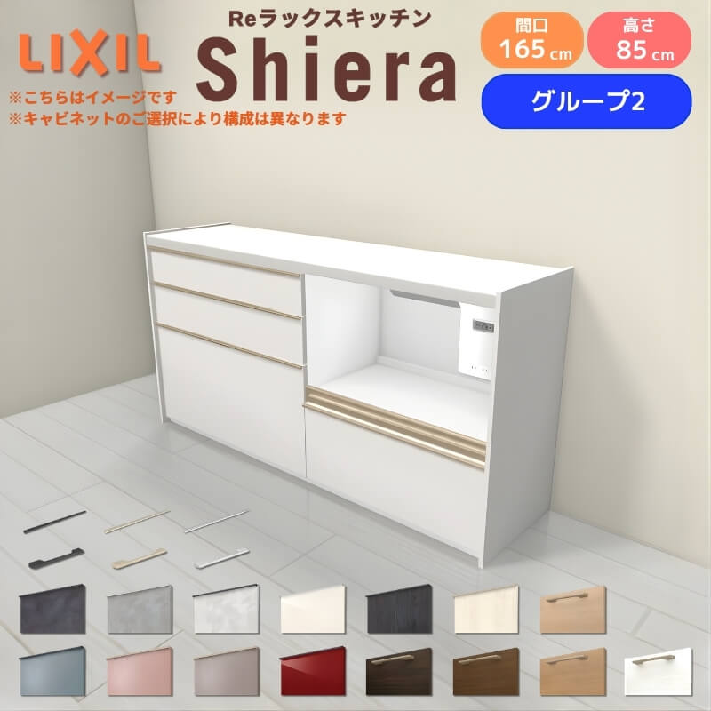 26年新モデル カップボード シエラ 間口165cm(90+75cm) フロアキャビネット 壁付け型 カウンター高さ85cm 奥行45cm W1650mm グループ2 LIXIL リクシル 食器棚 ロータイプ キッチン収納 キッチンボード セミオーダー 仕様変更 施主支給 リフォーム DIY