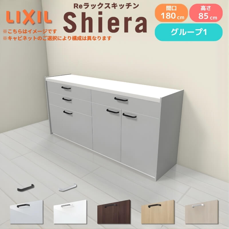 26年新モデル カップボード シエラ 間口180cm(90+90cm) フロアキャビネット 壁付け型 カウンター高さ85cm 奥行45cm W1800mm グループ1 LIXIL リクシル 食器棚 ロータイプ キッチン収納 キッチンボード セミオーダー 仕様変更 施主支給 リフォーム DIY