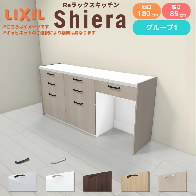 26年新モデル カップボード シエラ 間口180cm(60+60+60cm) フロアキャビネット 壁付け型 カウンター高さ85cm 奥行45cm W1800mm グループ1 LIXIL リクシル 食器棚 ロータイプ キッチン収納 キッチンボード セミオーダー 仕様変更 施主支給 リフォーム DIY